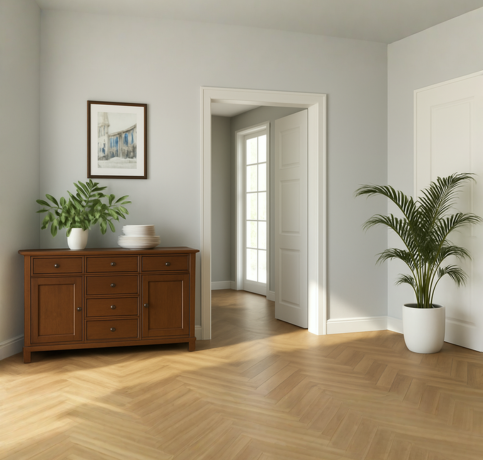 Herringbone flooring is a classic and stylish choice for both traditional and modern interiors.